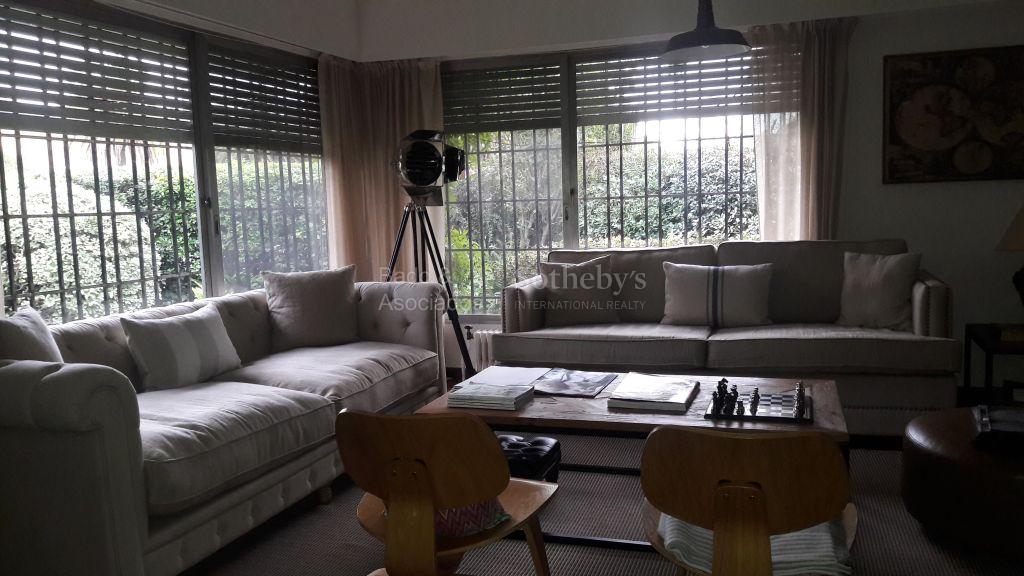 Casa en alquiler en Carrasco sur, sobre San Lucar y Esteban Elena. A dos cuadras de Tienda Inglesa y a 2 cuadras de la rambla. Casa esquina con living, comedor , escritorio (dormitorio), baño, cocina y servicio. Pisos de lapacho y 2 estufas. En planta alta tenemos 2 dormitorios que comparten un bano y la master suite. Jardín en el frente, con parrillero y garage grande para dos autos. Calefacción por radiadores a gasoil.Caracteristics of property