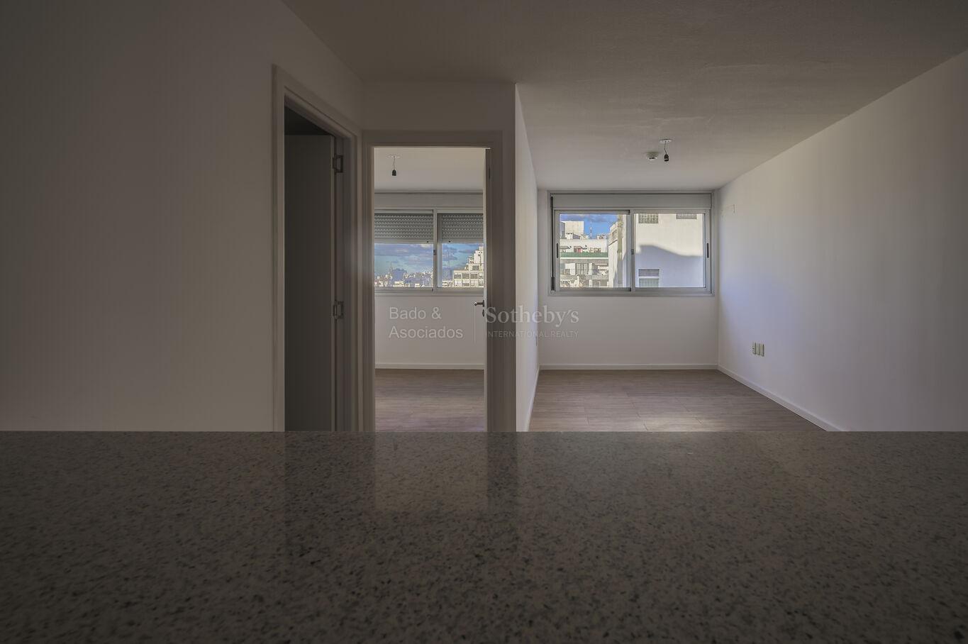 Apartamento de 1 dormitorio contrafrente, con amplia cocina integrada al living comedor. Baño completo. Lavadero en el edificio. Portería presencial y virtual 24 horas.