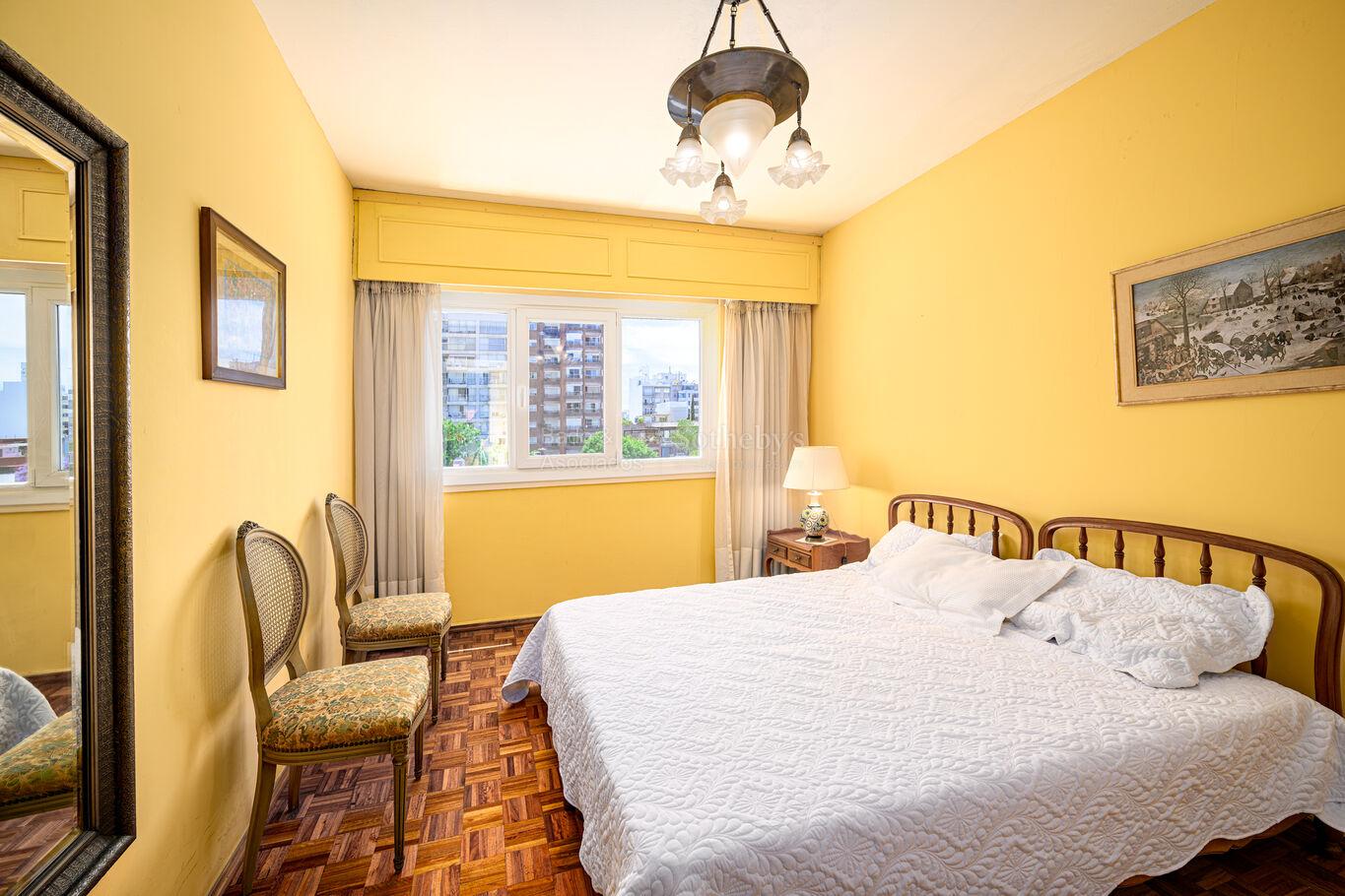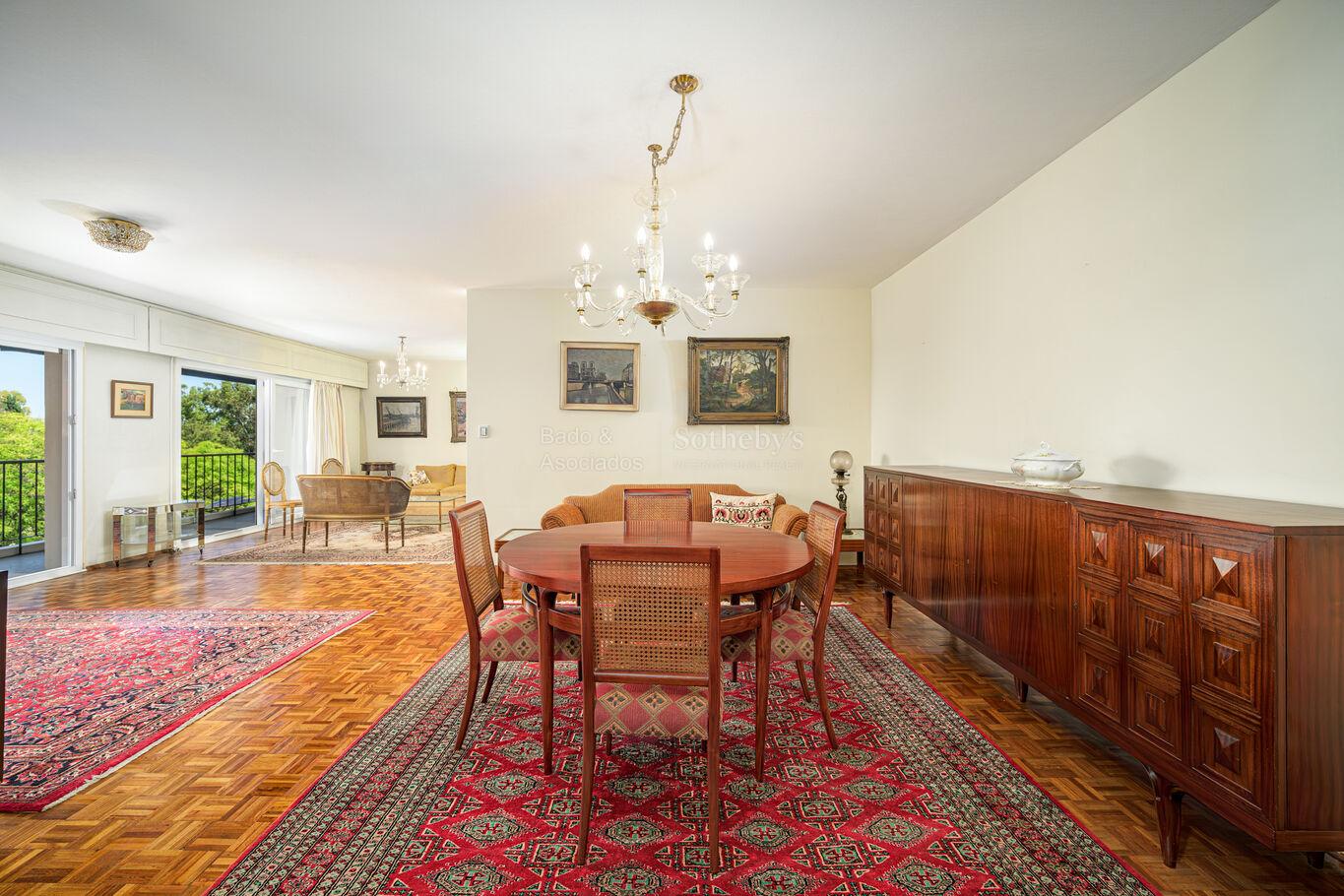 Situado en uno de los entornos más exclusivos de Montevideo, frente al Club de Golf, este elegante apartamento de 178 m² totales presenta una propuesta que combina estilo, comodidad y una impronta clásica muy cuidada. Su planta tradicional destaca por la amplitud y la calidez de cada ambiente. Al acceder, un living apaisado con amplios ventanales hacia Bvar. Artigas se integra de manera armoniosa con el comedor independiente. Las aberturas interiores originales en madera blanca y los pisos de parquet en tono roble claro realzan la nobleza de los materiales, mientras que las aberturas exteriores actualizadas en aluminio blanco con persianas automatizadas aportan un toque contemporáneo.La zona privada se organiza a través de un corredor amplio que distribuye 4 dormitorios con placares y dos baños completos. Junto al hall de entrada se ubica además un toilette de recepción.