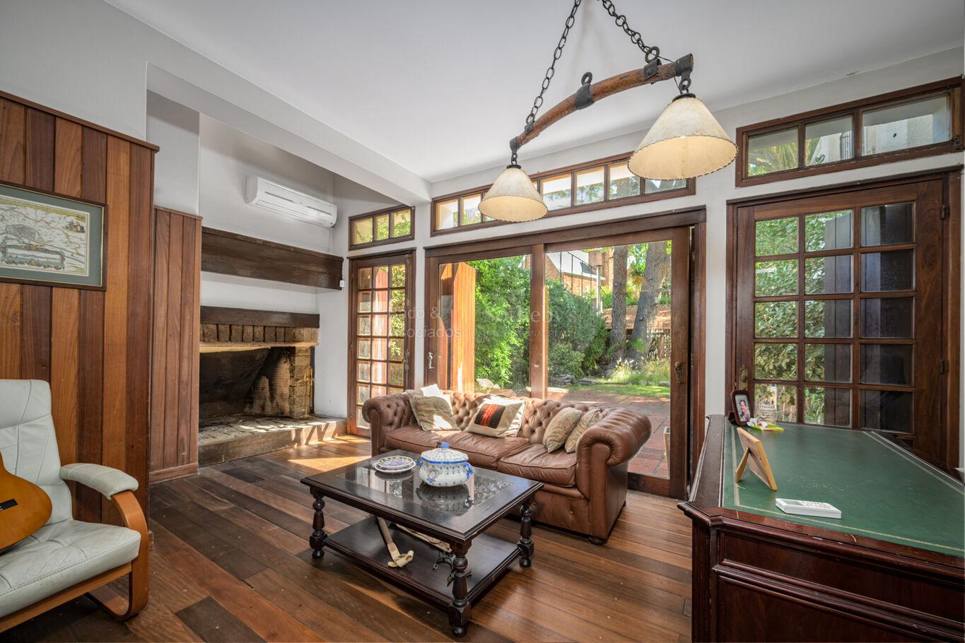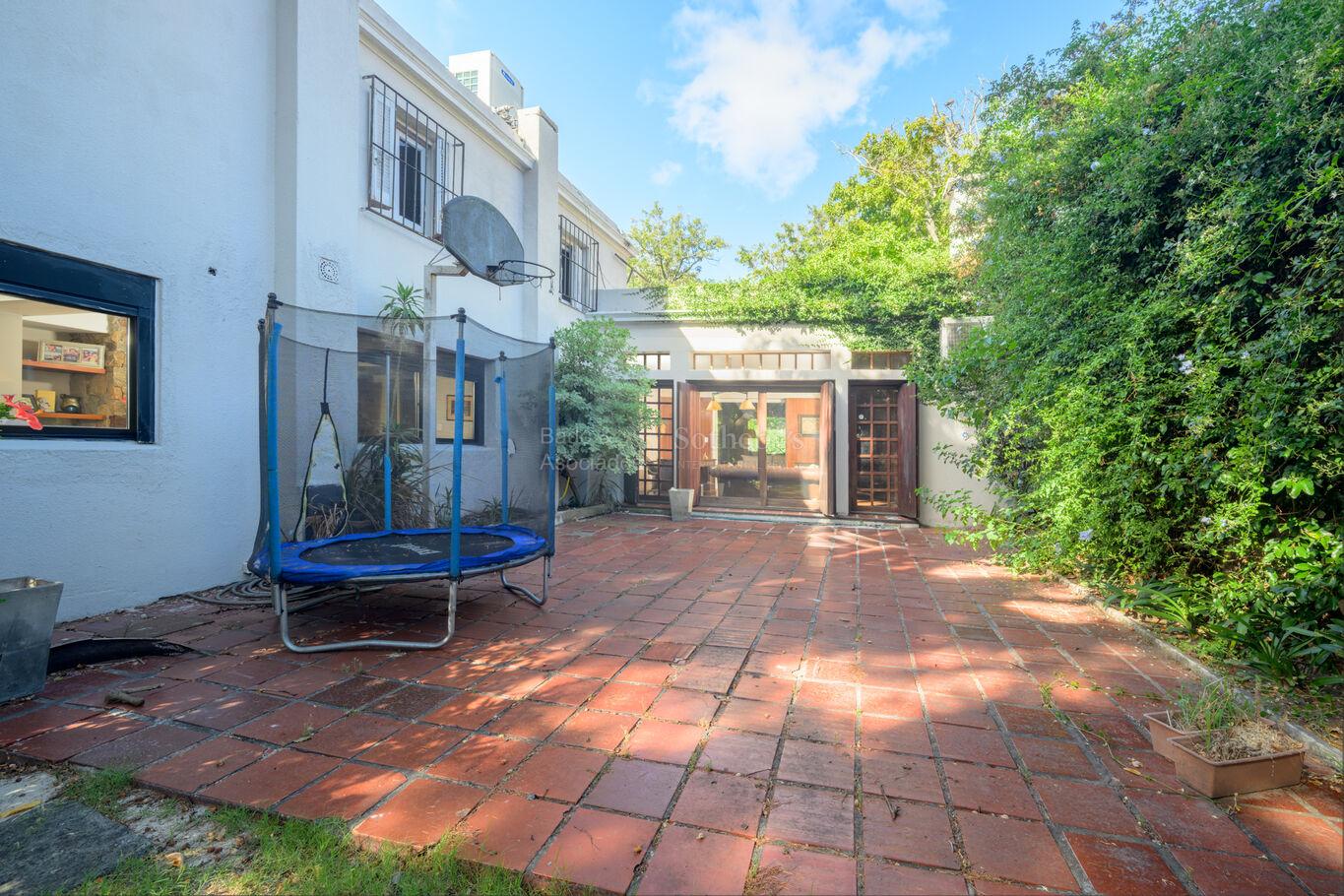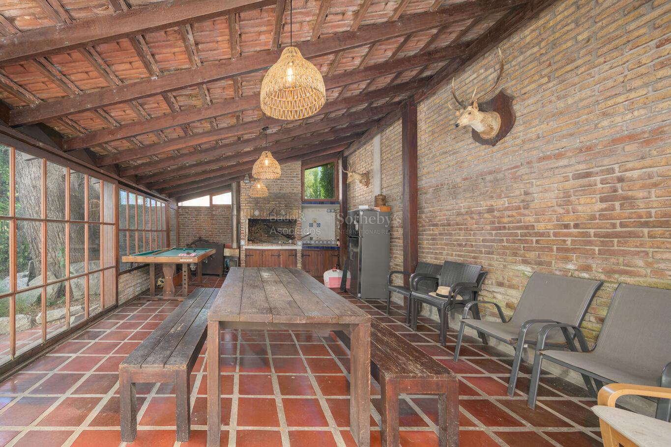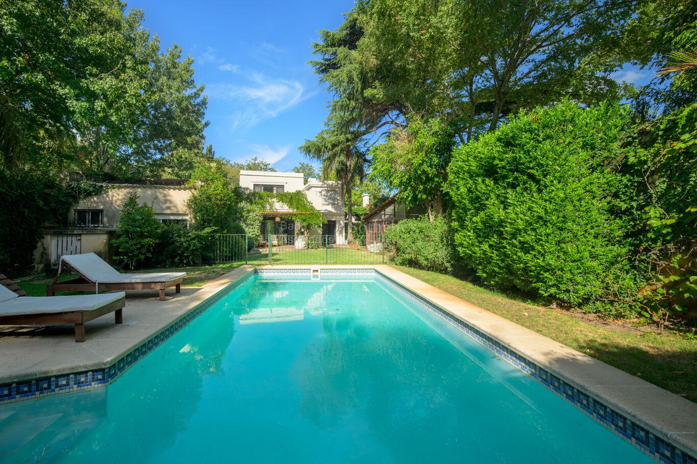 El exterior constituye uno de los grandes atributos de la propiedad: un jardín arbolado de excelente escala, con riego automático y óptima orientación solar, enmarca una piscina rodeada de verde que garantiza privacidad y disfrute durante todo el año. Completa el sector una barbacoa techada ideal para reuniones sociales y una casa de servicio independiente con dormitorio y baño.