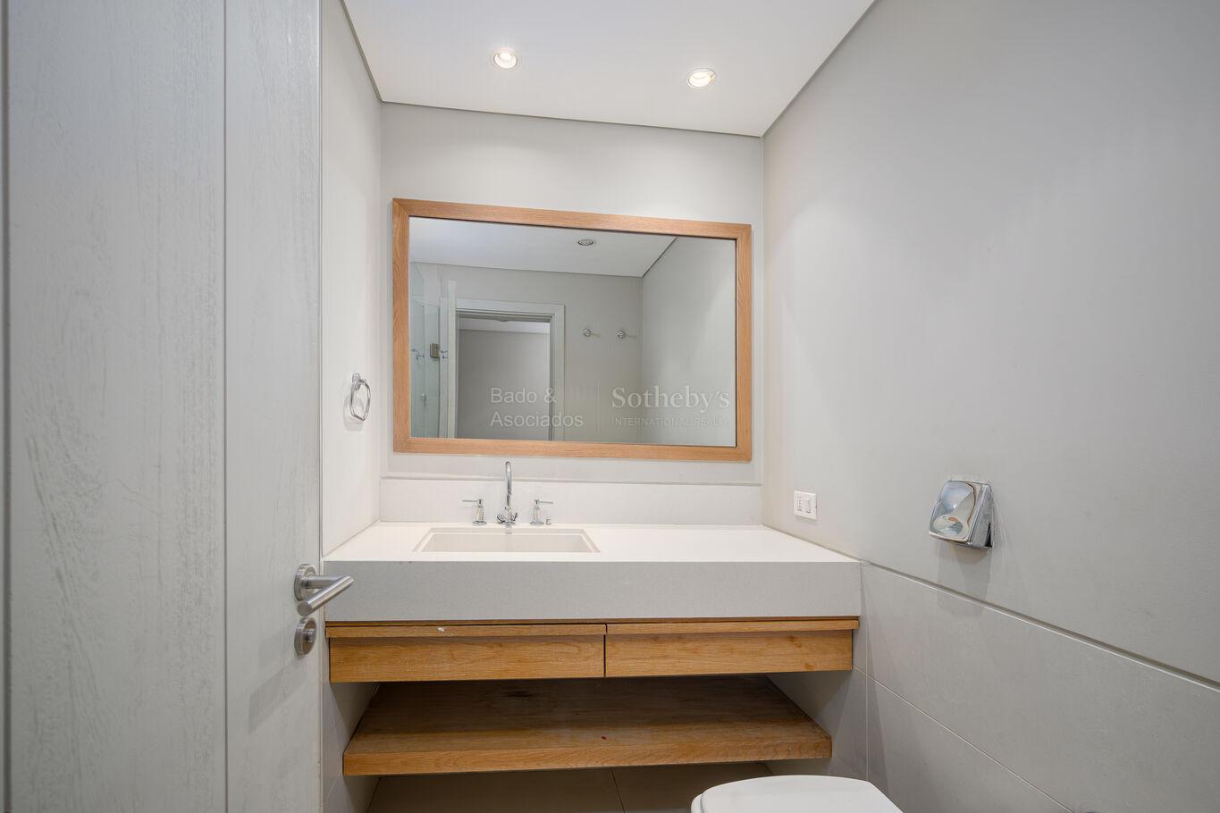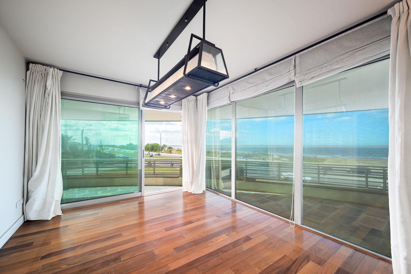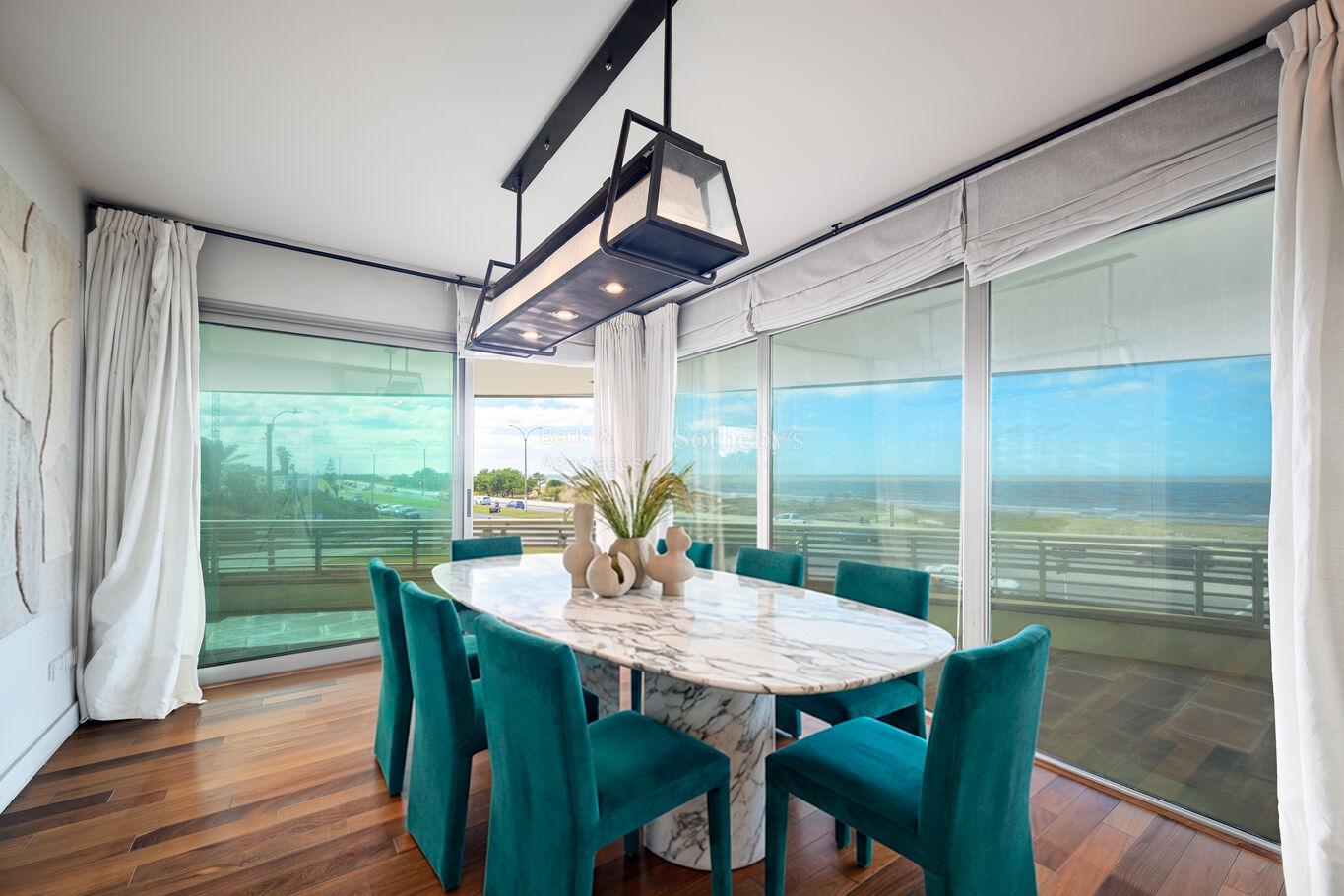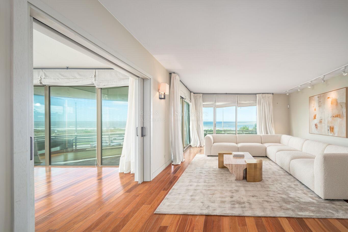 Apartamento moderno con terminaciones premium sobre la Rambla de Carrasco.La propiedad cuenta con un hall de recepción y cómodo toilette, a continuación encontramos un amplio y luminoso living y comedor independiente, ambos con acceso a una definida terraza con parrillero y vista a la playa de Carrasco. Estar o family room con salida a la terraza. Continuando el recorrido encontramos la cocina definida acceso de servicio con lavadero y dormitorio de servicio con baño propio.