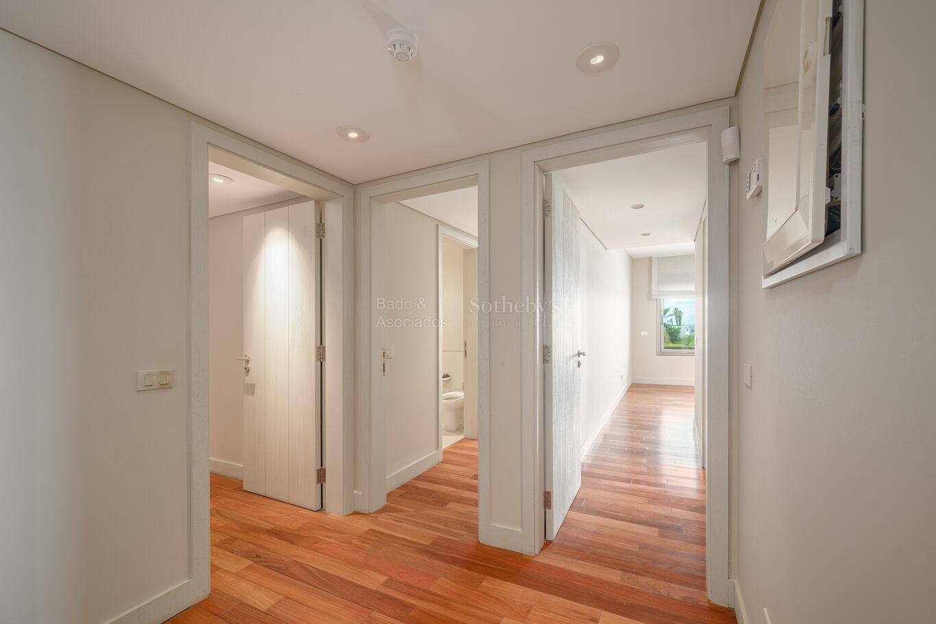 Area intima con hall de distribución a dormitorios en suite con placards. Dormitorio principal con walking closet y baño con jacuzzi.