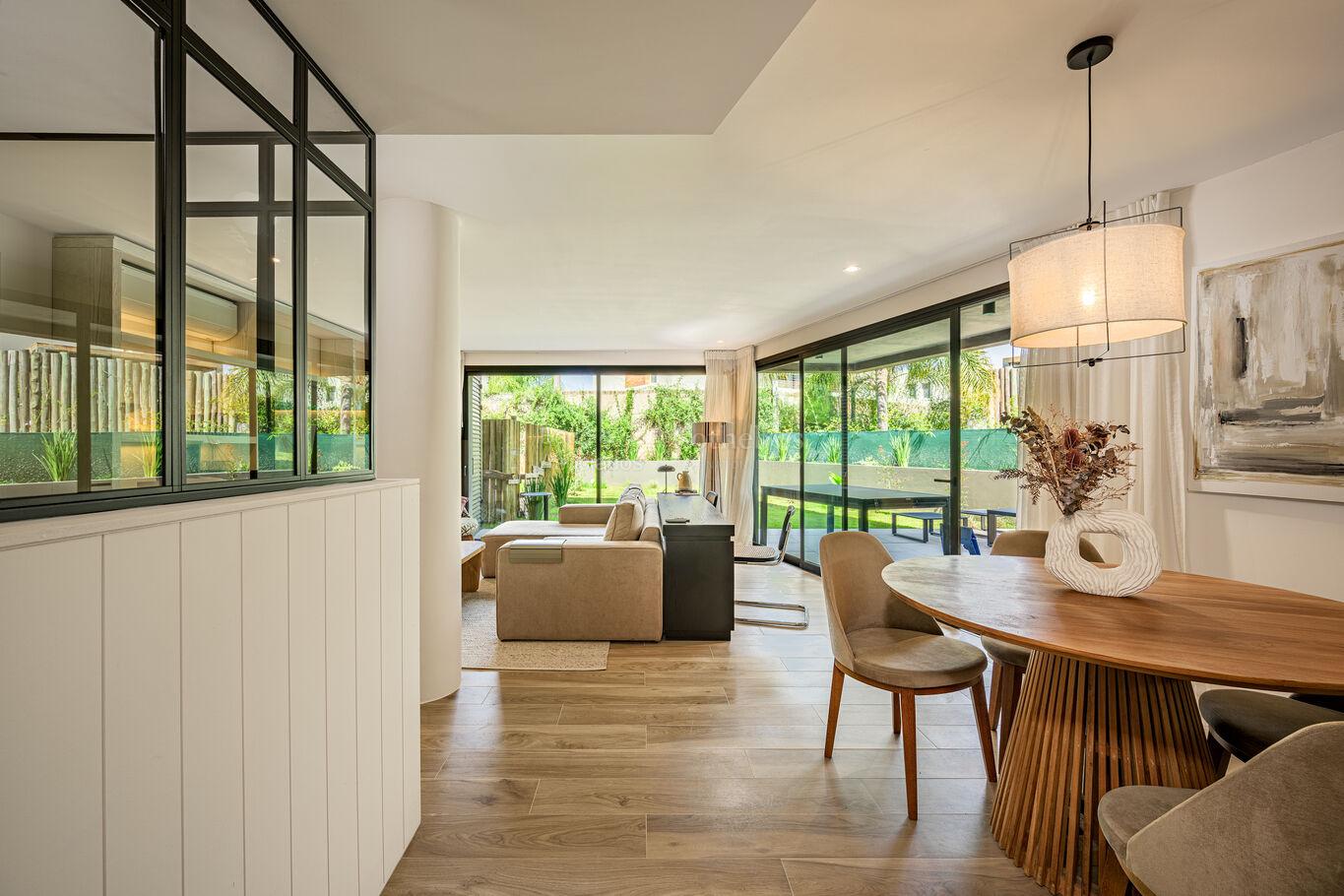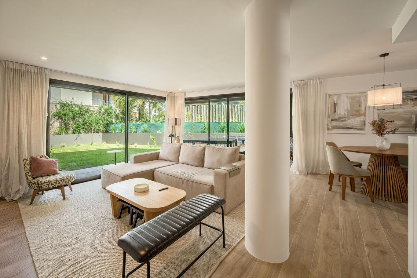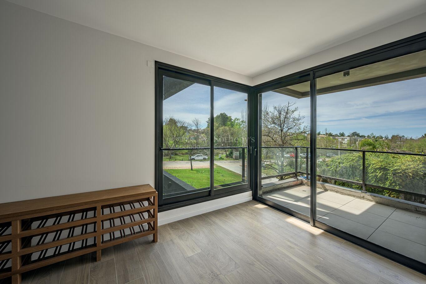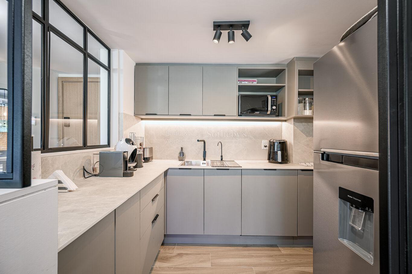 With a bright and modern design, the spacious corner living room harmoniously connects with a 47,08 meter private terrace, where you can enjoy unobstructed views of gardens and green spaces that invite rest and contemplation. In addition, the property has its own barbecue pit, ideal for receiving guests in an exclusive environment.