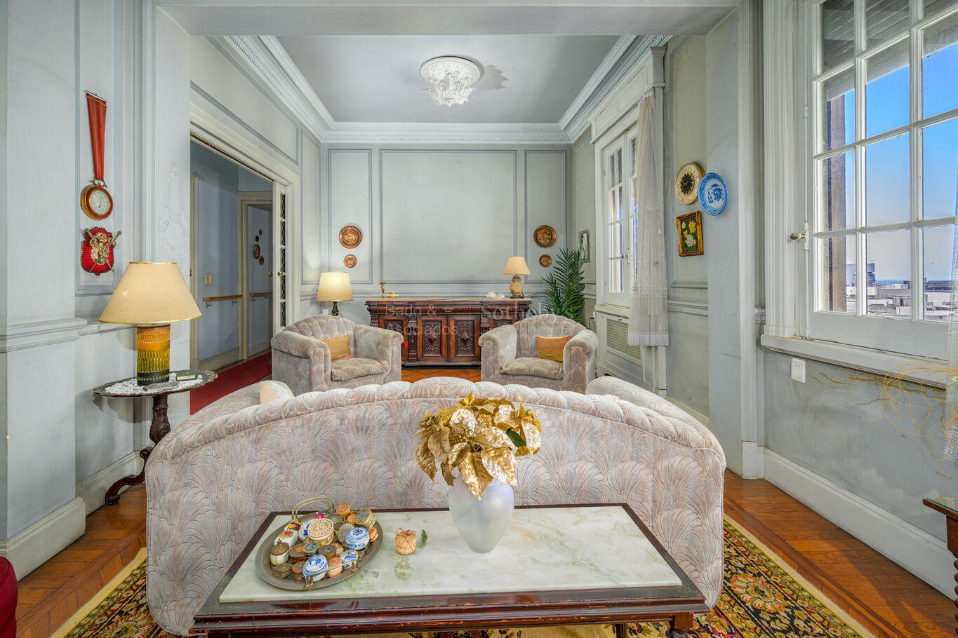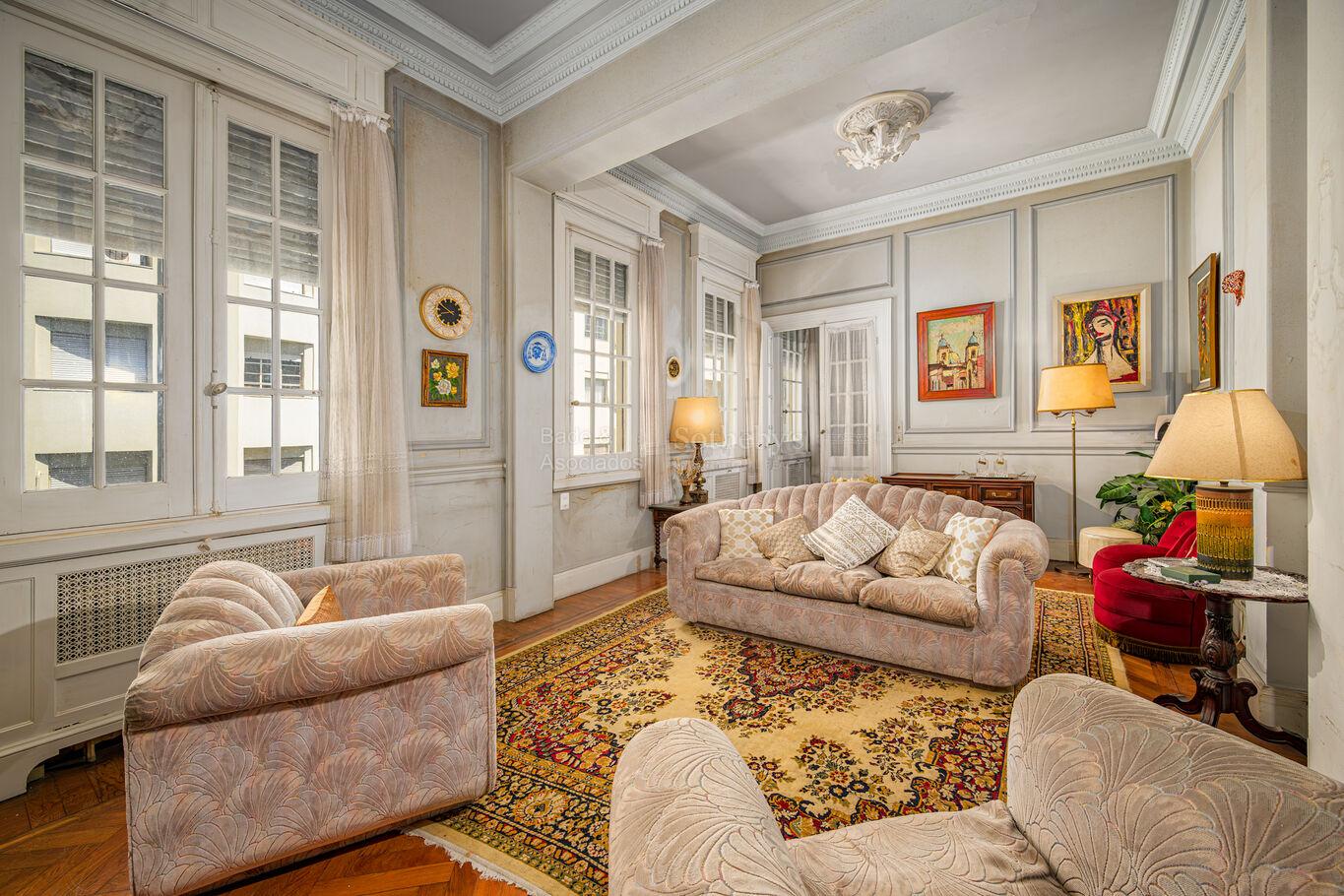 In the Río Branco Building, located on the corner of Wilson Ferreira Aldunate and 18 de Julio Avenue, lies this spacious fifth-floor, front-facing apartment. Originally designed as a residential building, it now presents a mixed use with both apartments and offices.