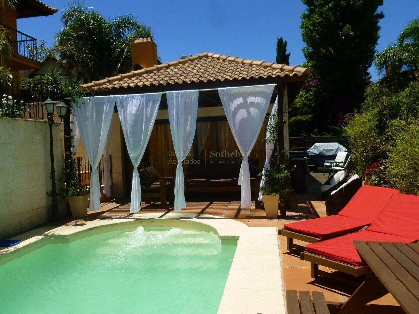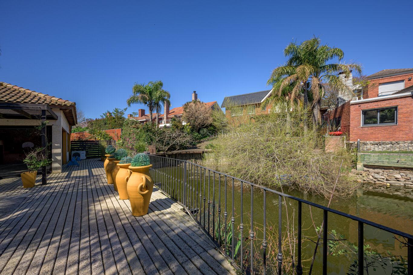 Materiales importados, 4 dormitorios, barbacoa y piscinaCon una sólida construcción desarrollada en dos plantas y un privilegiado fondo al lago, esta residencia integra espacios sociales amplios con terminaciones de alto nivel. En planta baja, living y comedor definidos conviven con un estar con estufa a leña y salida a terraza sobre el agua, escritorio y toilette. La cocina se integra al estar mediante una barra, y se complementa con lavadero, despensa y área de servicio (dormitorio y baño).