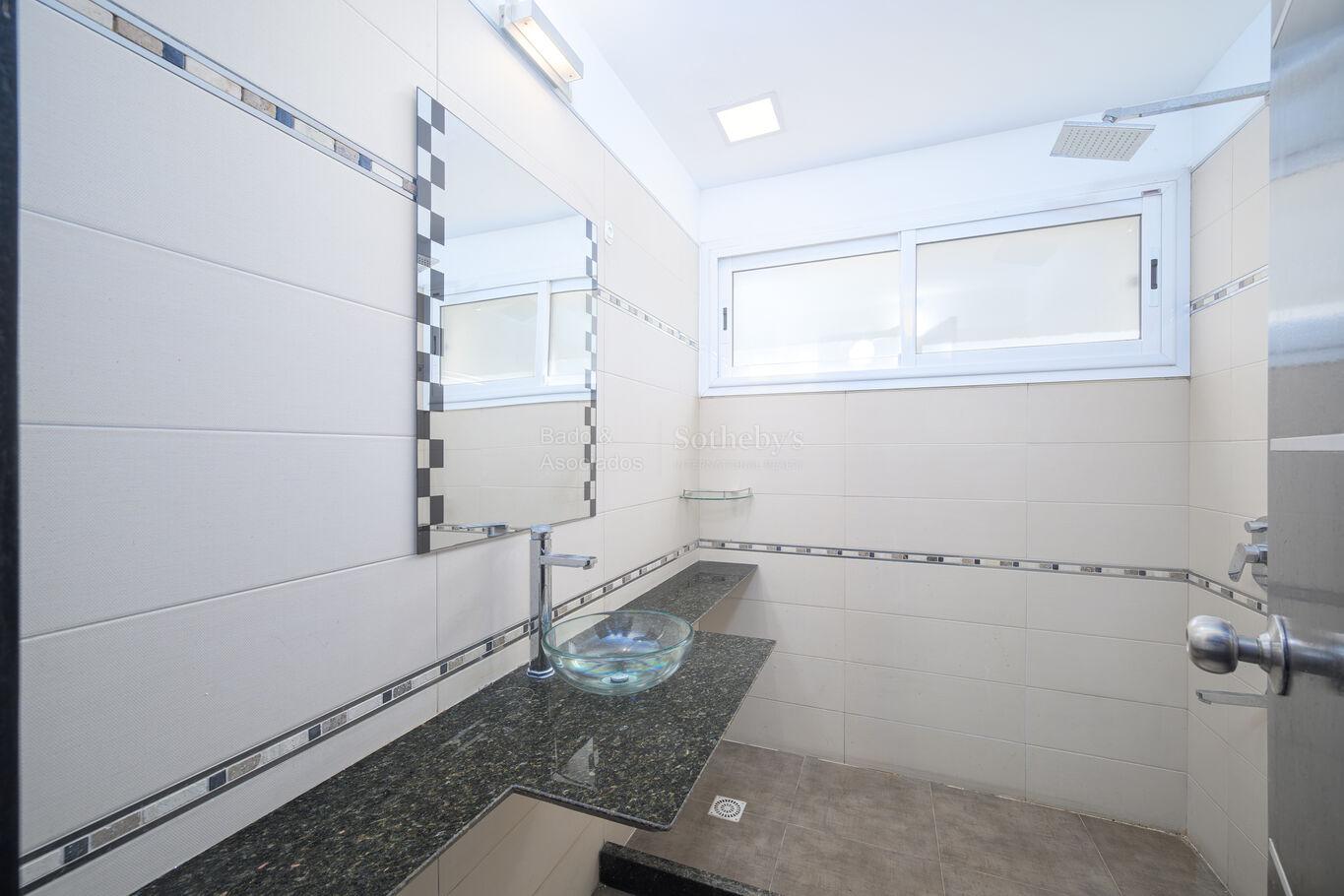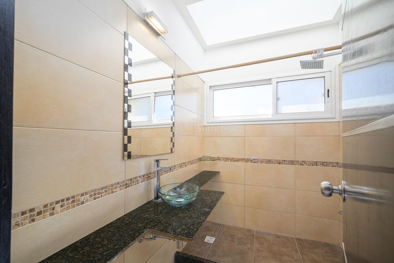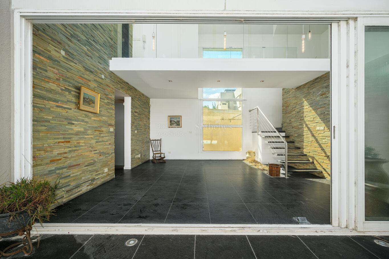 En planta baja, cuenta con un luminoso living-comedor con excelente conexión hacia el exterior, cocina definida, estar, toilette de visitas y dos dormitorios, uno de ellos en suite con baño completo.