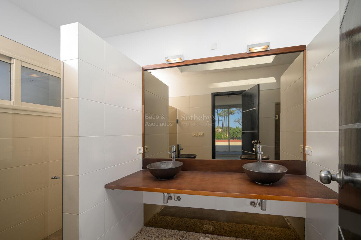 En planta alta se encuentran dos amplios dormitorios en suite, ambos con terrazas privadas que permiten disfrutar de vistas despejadas hacia los médanos y el entorno natural.