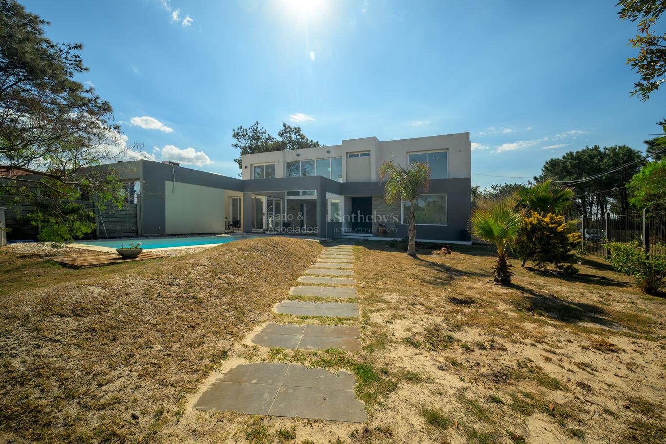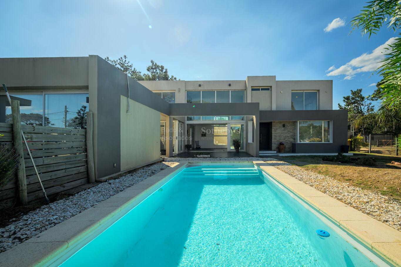 El exterior acompaña con un cuidado jardín, piscina climatizada y un perímetro completamente cercado, brindando seguridad y privacidad. Dispone además de entrada para dos vehículos.
